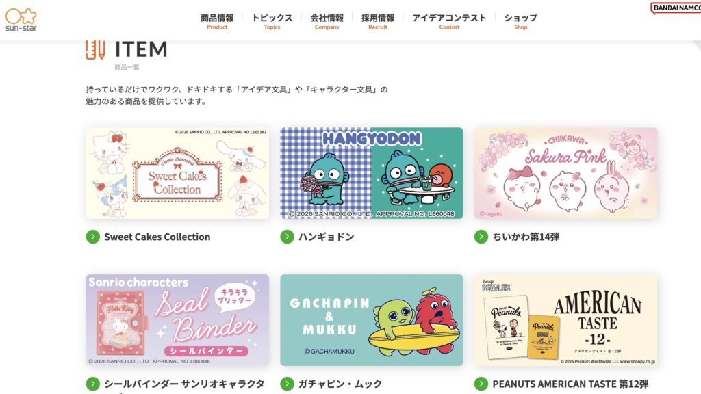 | 1位 | サンリオ | 300〜600円 | 人気キャラクター |